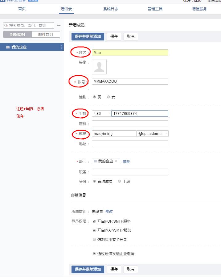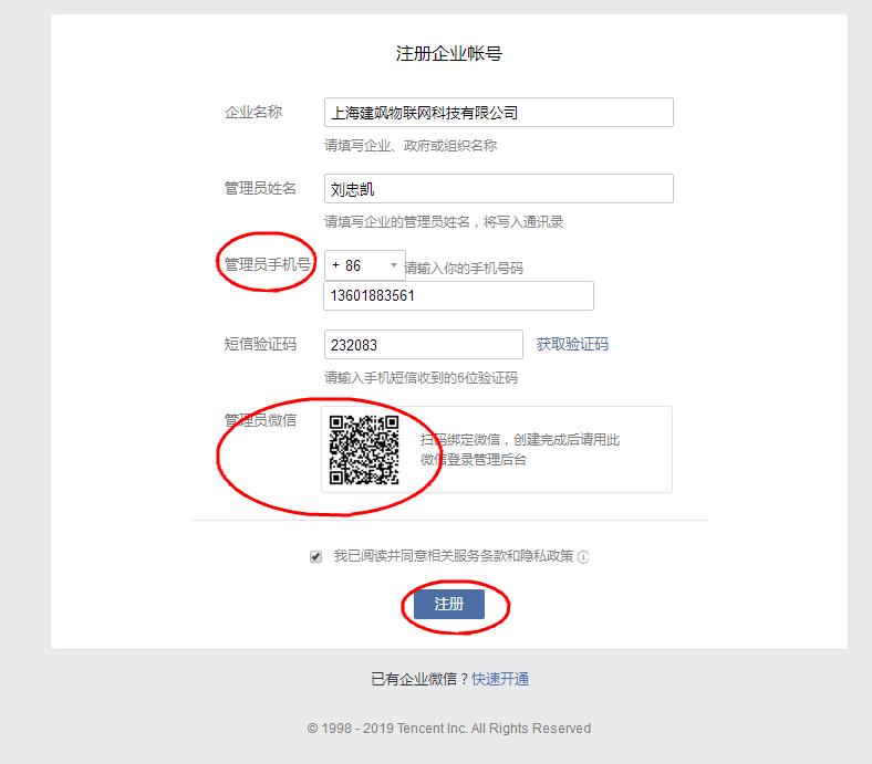 进入填写信息,特别是手机和微信 (这个是管理员手机和微信,将来都是通过这个进去的)