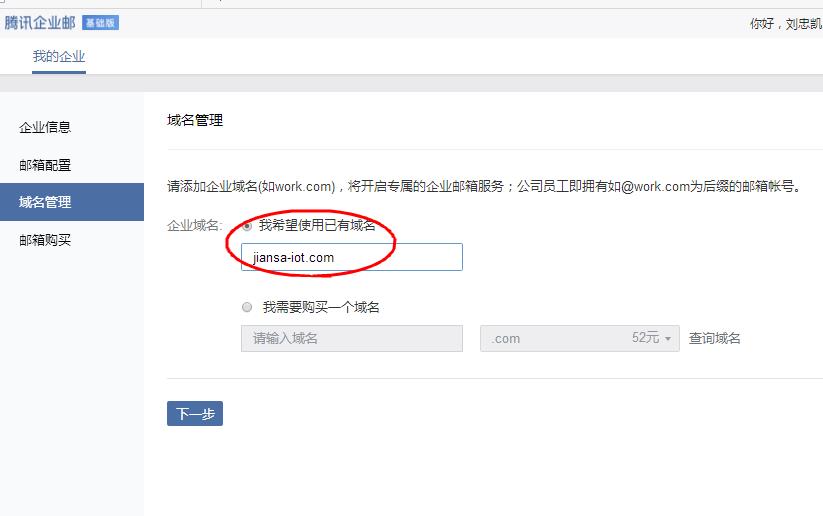 我之前都设置好域名mx解析了,直接下一步