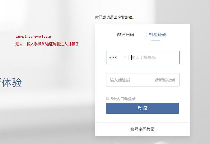记住,登录企业邮箱入口,经常用的, exmail.qq.com/login,(右边下方是登录管理员账号和成员邮箱账号入口 ,方式有微信扫或者手机验证码进入,也可以账号和密码进去)