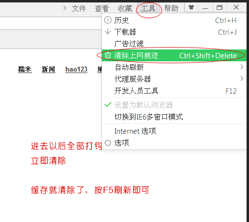 如果是其它浏览器,如搜狗等浏览器,有一个 工具--清除上网痕迹